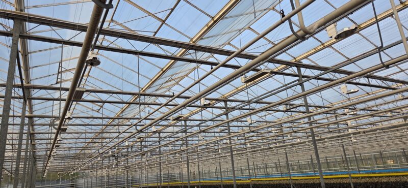 • 5 x Ø 57 mm monorailbuis per 8.00 m¹ in de gehele kas. Horizontaal t.o.v. teeltvloer!