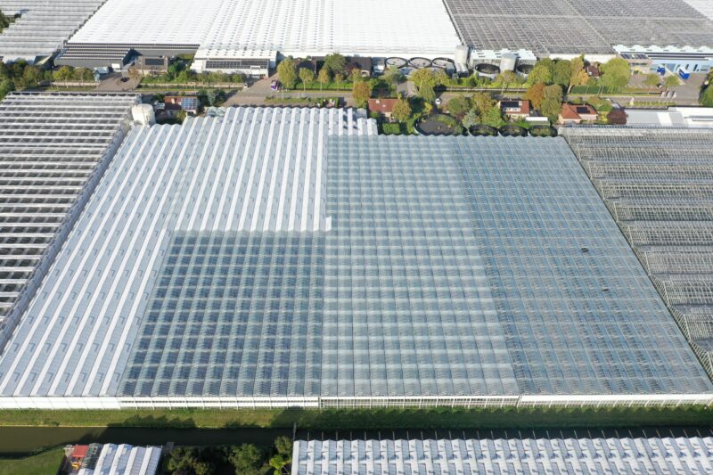 • Dek voorzien van enkel glas in aluminium roeden, met tweezijdig luchtramen.