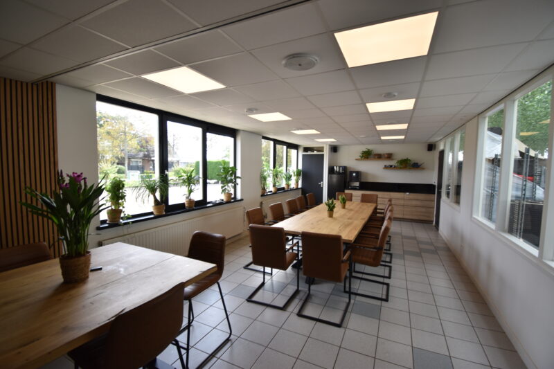 • Kantine, gerenoveerd in 2023, voorzien van tegelvloer, systeemplafond, keukenblok en vaste kast.