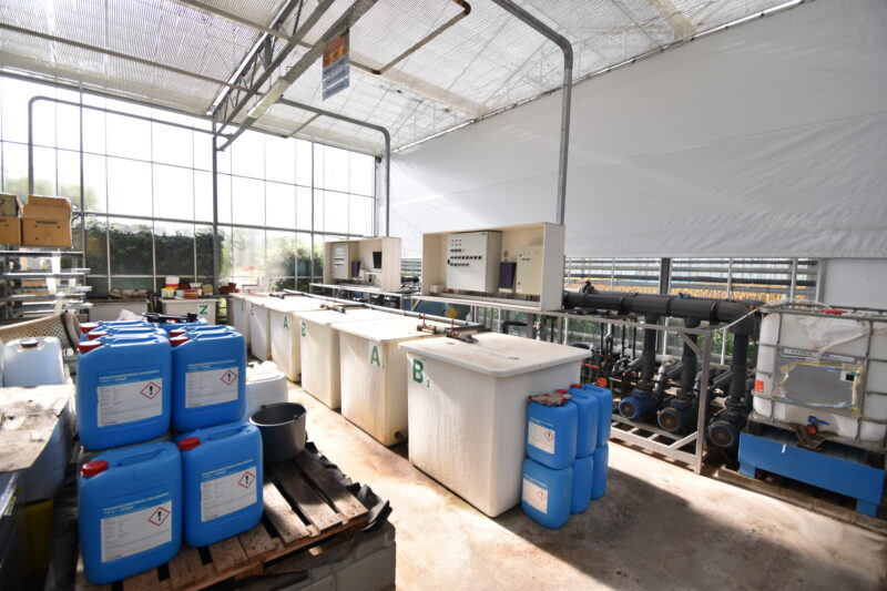 • Vier waterbassins onder de teelttafels met ieder een inhoud van 200 m².  Drie t.b.v. voorraad/drain eb- en vloedvloeren en één t.b.v. drain(rest)water.