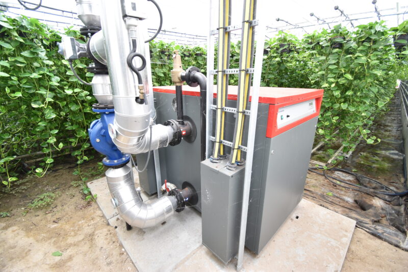 • Twee kappen van 8 m¹, onder de teelttafels, 6 x Ø 32 mm buisverwarming.