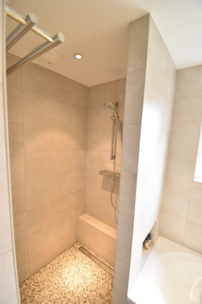 • Wanden en vloeren volledig betegeld.