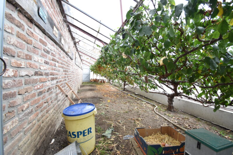 • De druivenkas is opgebouwd uit metselwerk, met “steunberen” en is aan de gehele voorzijde op deze buitenplaats doorgetrokken.