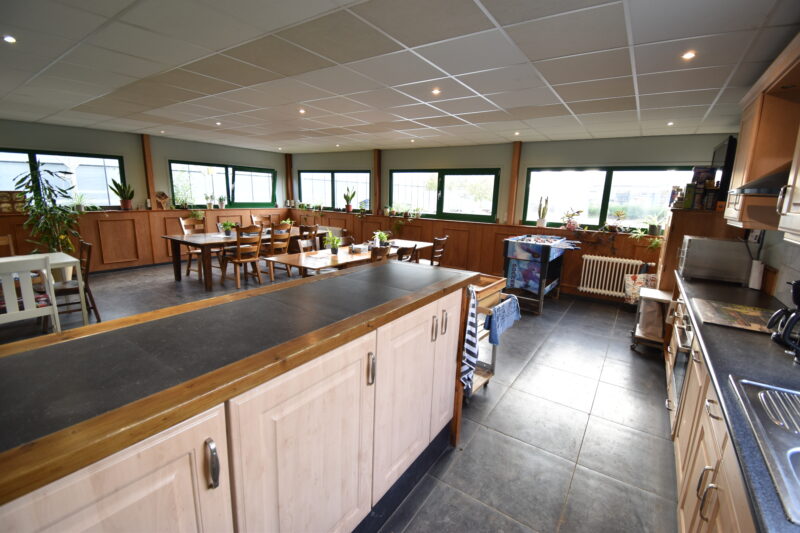 • Grote automatische entreeschuifdeur, met meldingsfunctie, dubbele deuren naar werkplaats en kas en schuifdeuren naar de kantine.