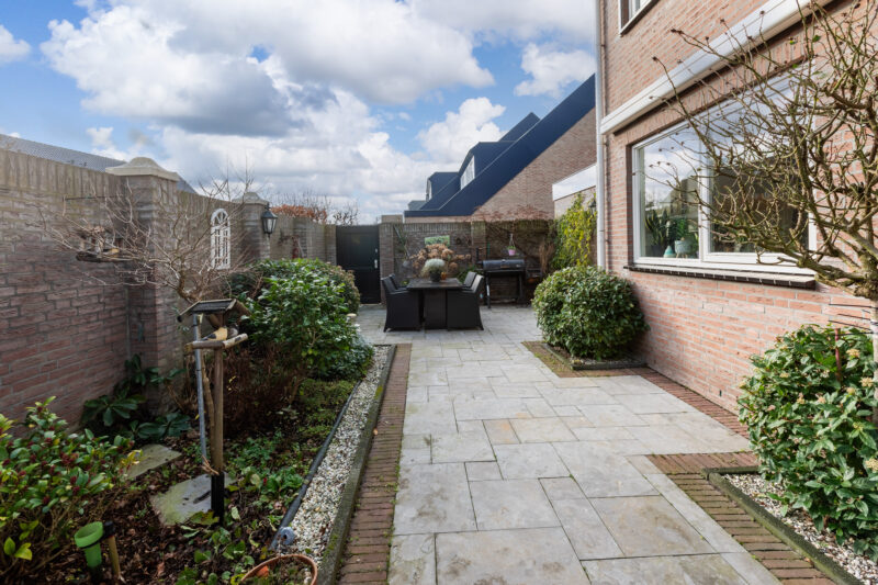 • Verzorgde onderhoudsvriendelijke achtertuin, op het zuiden, met veel privacy. Bereikbaar middels de garage en achterom. Voorzien van sierbestrating, beplanting en voorzien van gemetselde erfafscheiding met poortdeur.