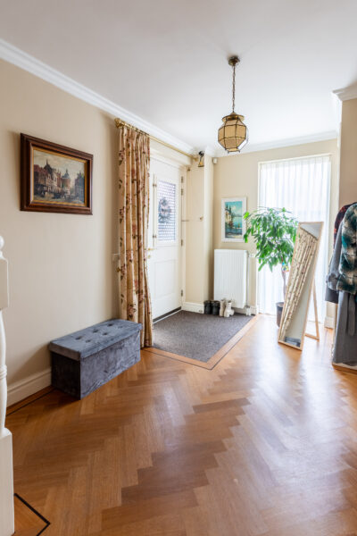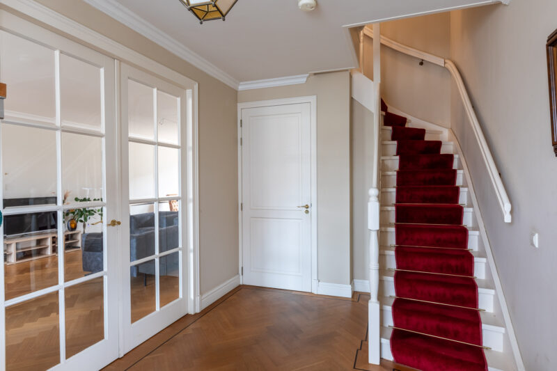• Fraaie royale hal, met dubbele deuren naar de woonkamer, meterkast en vaste trap naar de eerste etage.