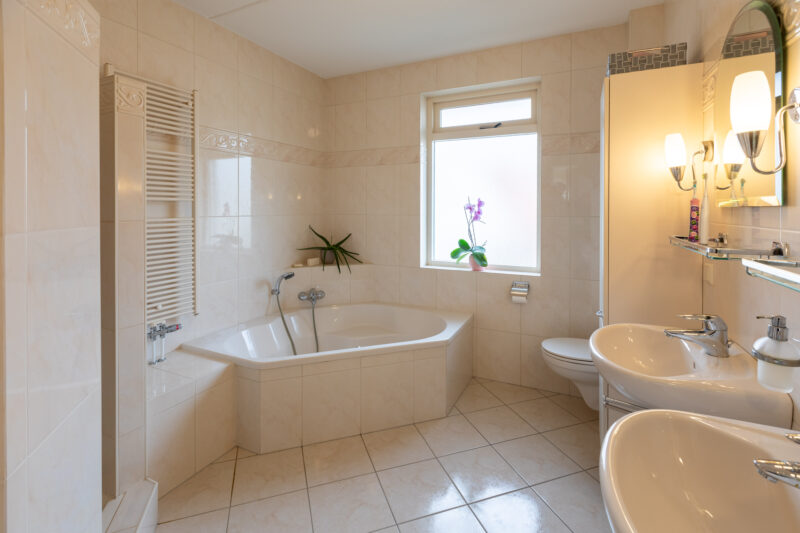 • Ruime badkamer voorzien van: