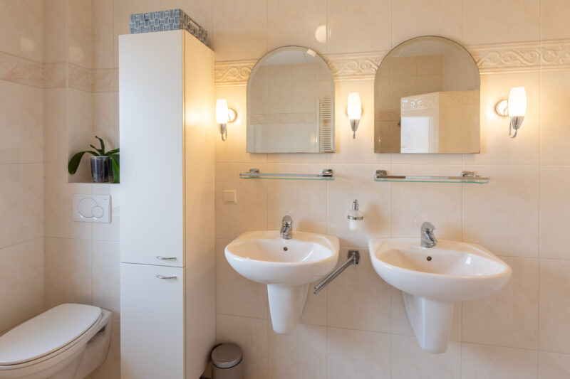 • Twee wastafels.