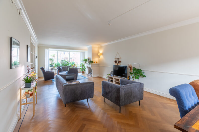 • De parterre is voorzien van strak gestuukte plafonds en voorzien van sierlijsten.