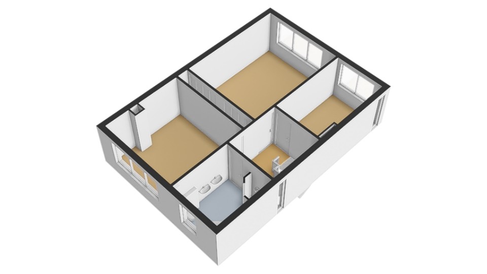• Drie ruime slaapkamers, waarvan één voorzien van vaste kastenwand.